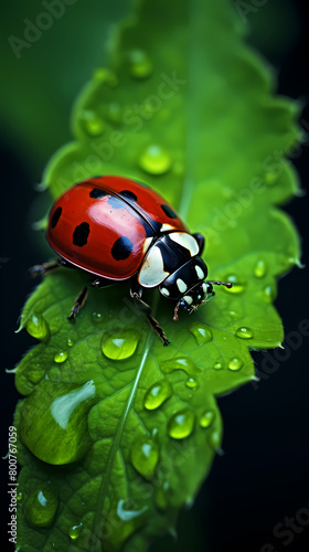Obraz premium Ladybug with water droplets on leaf