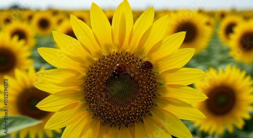 © Imam, Fototapeta premium Ladybugs on sunflower in field