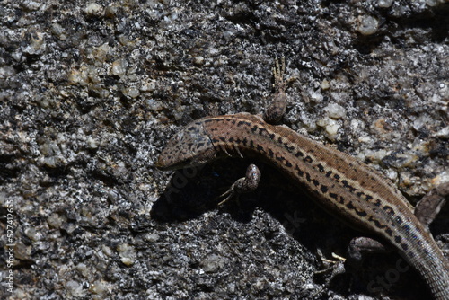 © Oberce, Naklejka premium Lagartija en muro de piedra