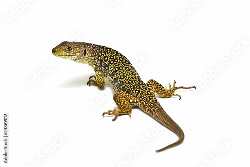 © Angel Simon, Fototapeta premium Lagarto ocelado visto de espaldas.