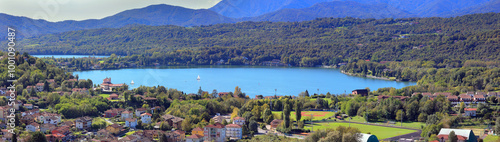 © picture10, Fototapeta premium lago e città di avigliana, italia, 28 settembre 2024, avigliana lake and village, italy, 28th september 2024