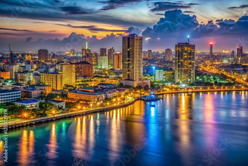 © Man888, Fototapeta premium Lagos Island Skyline at Night - Dramatic Low Light Cityscape Photography