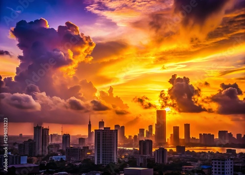 Fototapeta premium Lagos Skyline Silhouette at Sunset, Dramatic African Cityscape