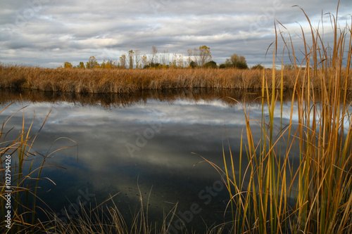 © LFRabanedo, Fototapeta premium Laguna con espadañas en otoño.