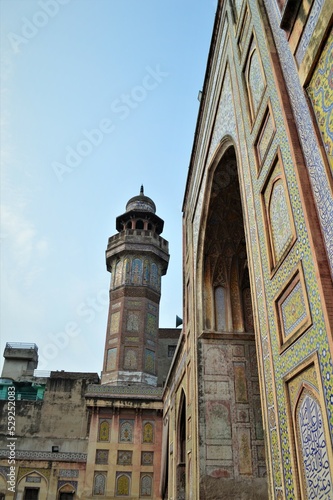 © sana, Fototapeta premium LAHORE, PAKISTAN, JULY 05, 2018: beautiful exterior view of masjid wazir khan with its minaret, mosque