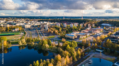 Naklejka premium Lahti, Finland. Autumn colors from air. 2020