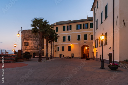 Naklejka premium Laigueglia old town at dusk, Italian Riviera