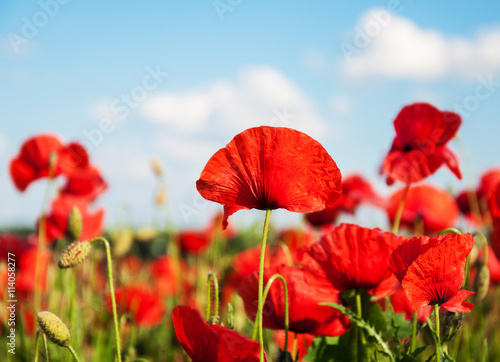 Fototapeta premium łąka z pięknymi czerwonymi kwiatami maku