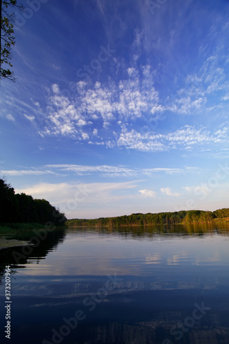 © aRTI01, Fototapeta premium lake and blue sky with clouds in the morning
