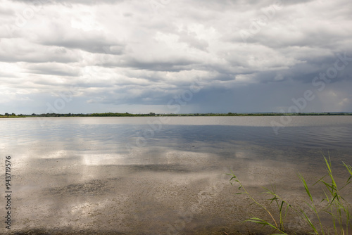 Fototapeta premium lake and trees on the shore before a storm