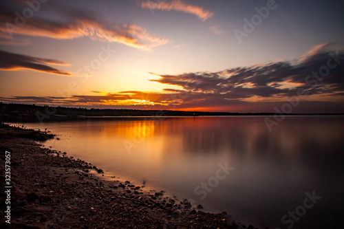 © Uwe, Obraz premium lake Bärwald at sunset