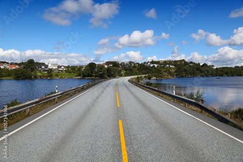 Fototapeta premium Lake causeway road in Vestland, Norway