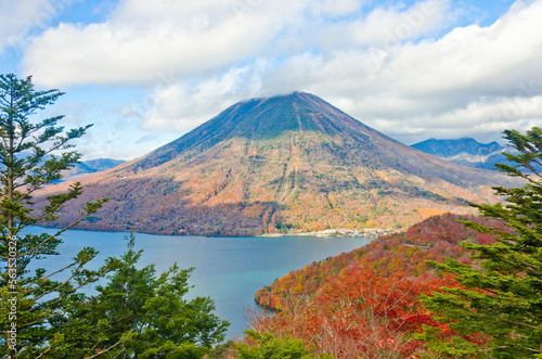 Fototapeta premium Lake Chuzenji and Mt. Nantai in Autumn.