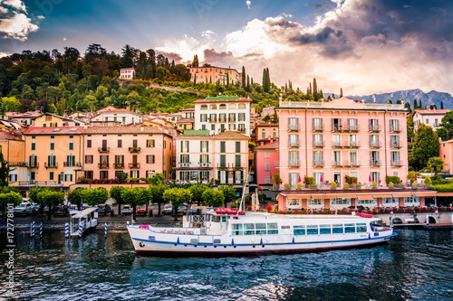© Nicolae Merceanu, Naklejka premium Lake Como. Belaggio, Italy. Summer time. European vacation, living life style, architecture and travel concept.