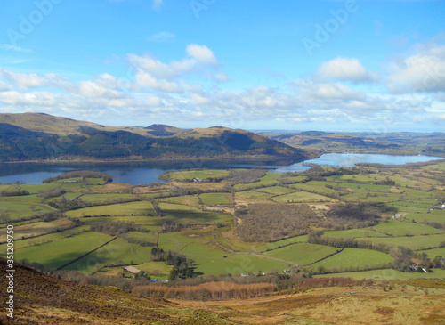 © Chrissie, Naklejka premium Lake District fields with lake and clouds