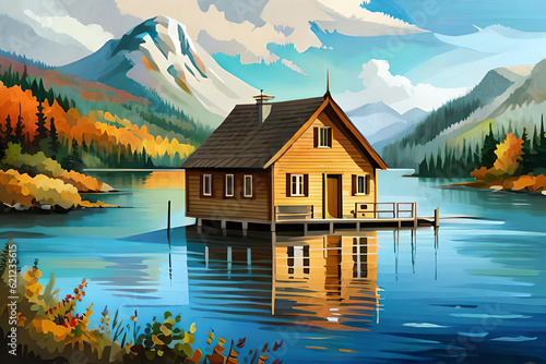 © vector_master, Fototapeta premium Lake House landscape. AI generated illustration