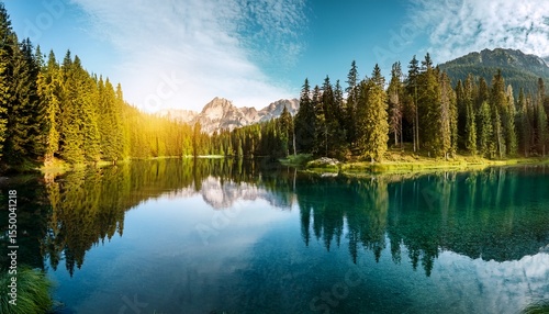 © Emily, Fototapeta premium lake in the forest panorama natural background