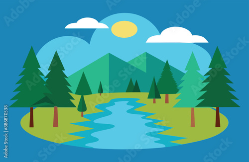 © TA graphic design, Obraz premium lake in the forest vector illustration