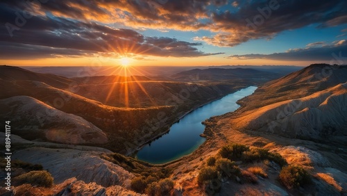 © WPDesignz, Fototapeta premium Lake In The Mountain Valley.