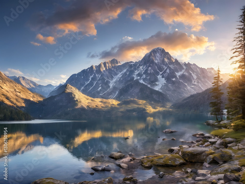 © Henry McMuffin, Fototapeta premium lake in the mountains. ai generated