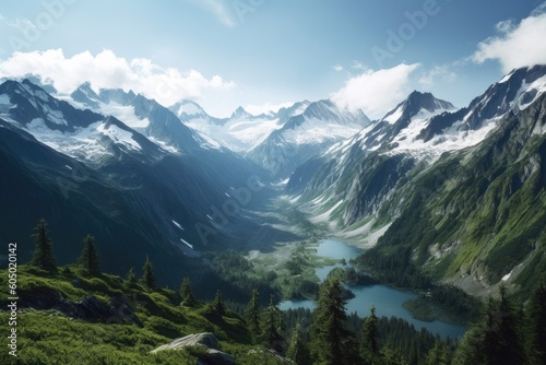 Fototapeta premium Lake in the Mountains | Majestic Peaks and Pristine Waters | AI Generative