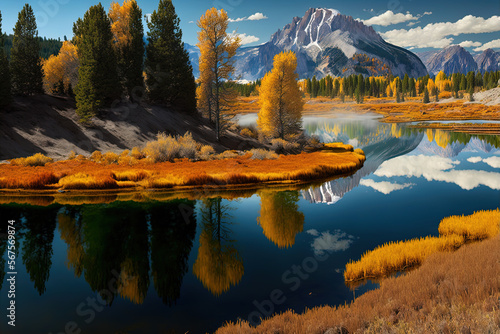 © Gary, Naklejka premium lake in Yellowstone National Park with mountains by generative AI