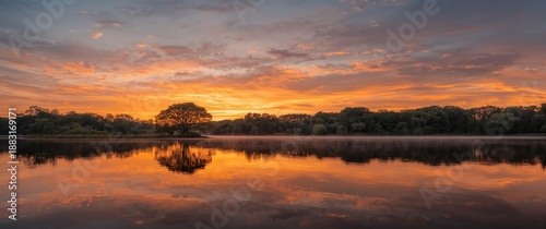 © Emin, Obraz premium Lake mirrored at sunset