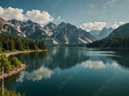 © claudunia, Naklejka premium Lake nestled in the mountains.