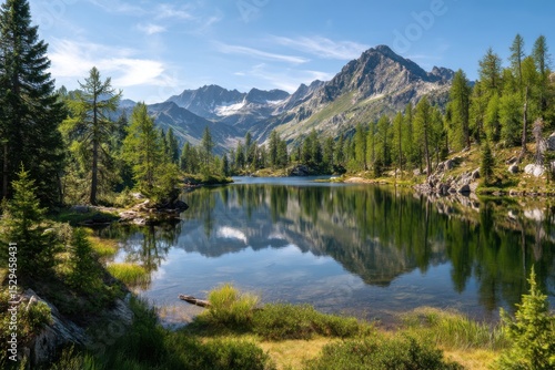 © All STAR, Naklejka premium Lake reflection mountain view nature on white background