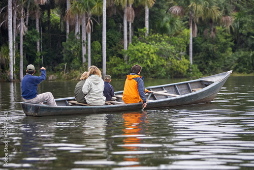 © Beto Santillan, Fototapeta premium Lake Sandoval is a beautiful oxbow lake located in the Tambopata National Reserve in the Madre de Dios region of southeastern Peru. It's a popular destination for ecotourism and wildlife enthusiasts