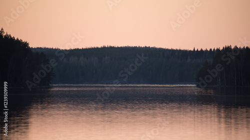 Fototapeta premium Lake scenery around sunset on a late spring evening in conifer forests of Finland