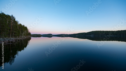 Fototapeta premium Lake scenery around sunset on a late spring evening in conifer forests of Finland