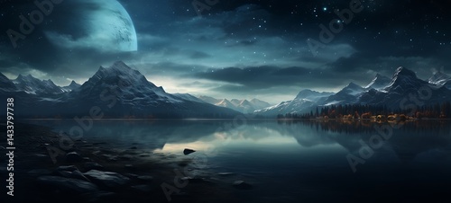 © Ania, Naklejka premium lake shaped constellation, ai generative