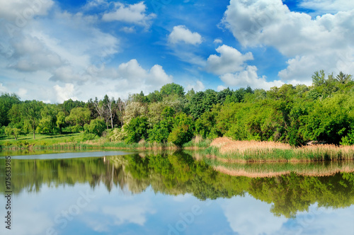 © alinamd, Fototapeta premium lake, summer forest on the banks and sky