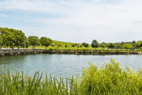 Naklejka premium Lake Trashmore, at Mount Trashmore Park, a city park and lake created on the site of a former landfill in Virginia Beach, Virginia.