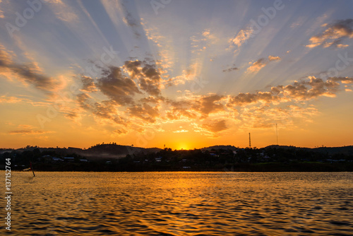 © rukawajung, Fototapeta premium Lake view in sunset time