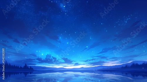 Fototapeta premium lake view with starry night sky anime wallpaper background digital art illustration