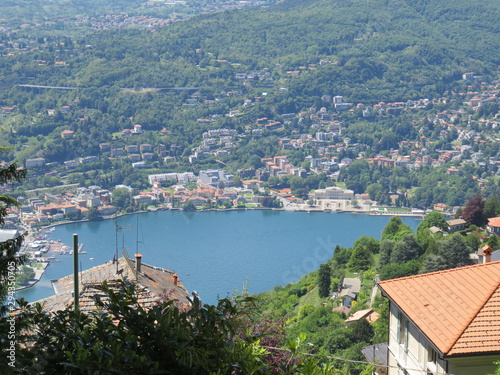© Mladen, Fototapeta premium lake view with surrounding mountains from the hill