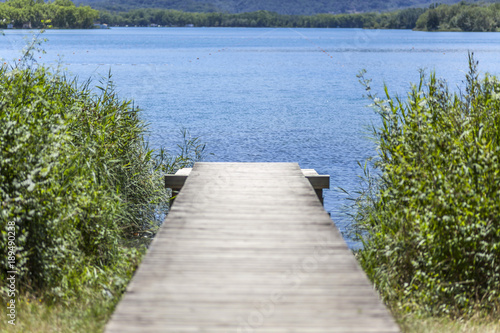 © joan_bautista, Naklejka premium Lake view with wooden walkway in Banyoles,Catalonia,Spain.