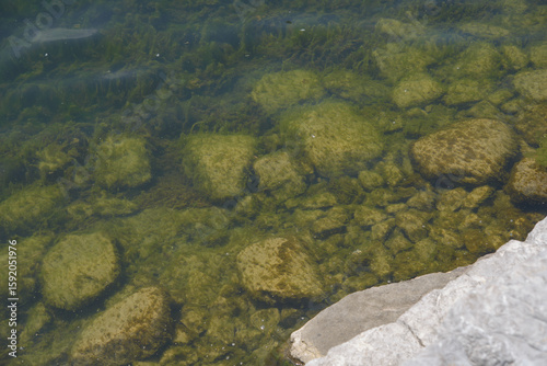Obraz premium lake water and rocks with algae