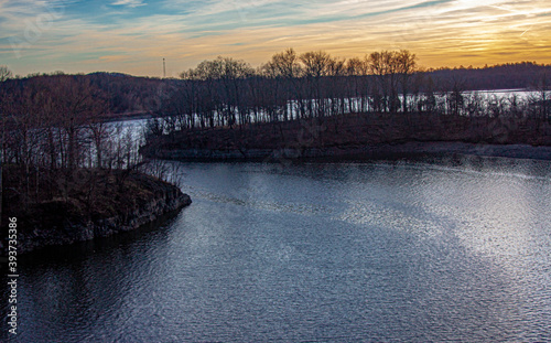 © Caleb, Fototapeta premium Lake with a beautiful gold sky
