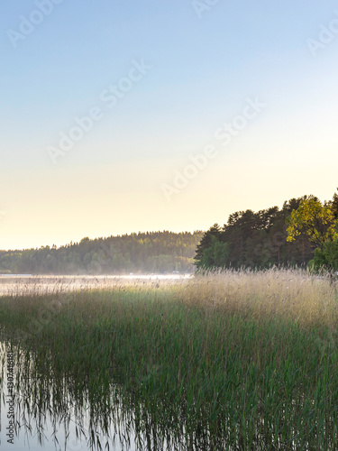 © Sergei, Fototapeta premium Lake with a forest in the background