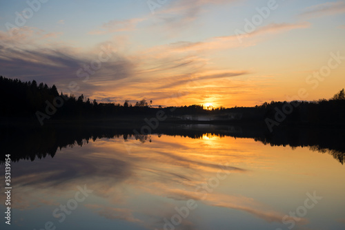 © ChristianL, Obraz premium Lake with reflection during sunset