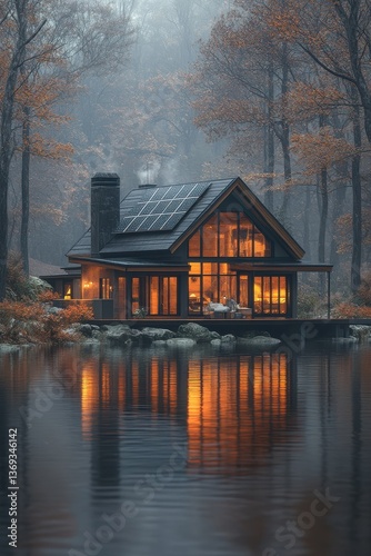 © mama, Fototapeta premium Lakeside Cabin in Autumn.
