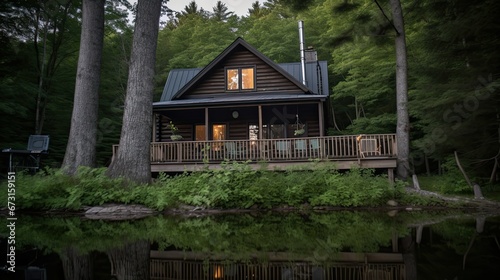 Obraz premium Lakeside Cabin Surrounded by Forests