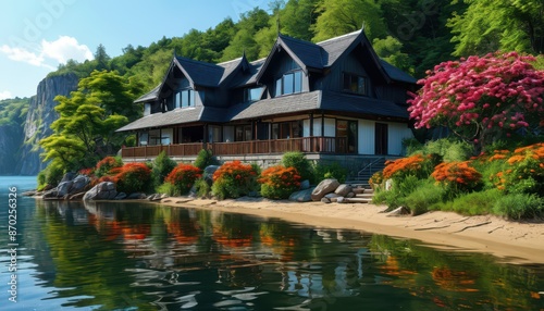 Obraz premium Lakeside Cabin With A View.