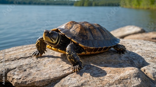 © Chamika, Obraz premium Lakeside Leisure: A Musk Turtle's Day of Warmth and Relaxation