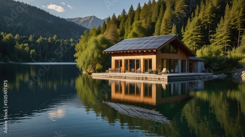 © Rizal, Fototapeta premium Lakeside Solar Home Retreat