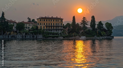 © L.H, Fototapeta premium Lakeside sunset over Italian villas