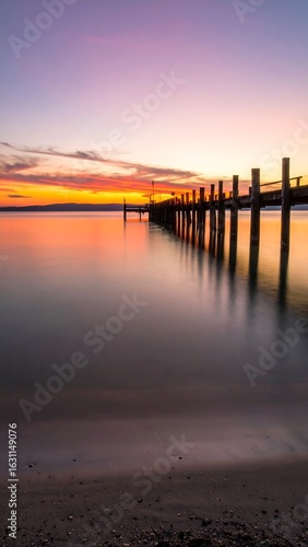 Obraz premium Lakeside sunset pier